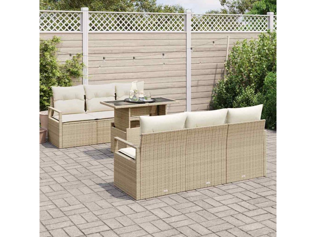 Sada zahradních pohovek s úložištěm 7 pcs Béžová polyratan 3348747