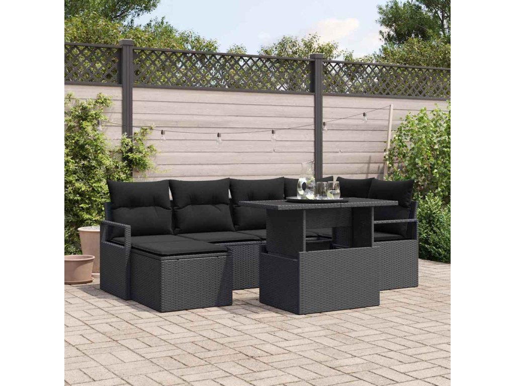 Sada zahradních pohovek s úložištěm 7 pcs Černá Poly ratan 3357596