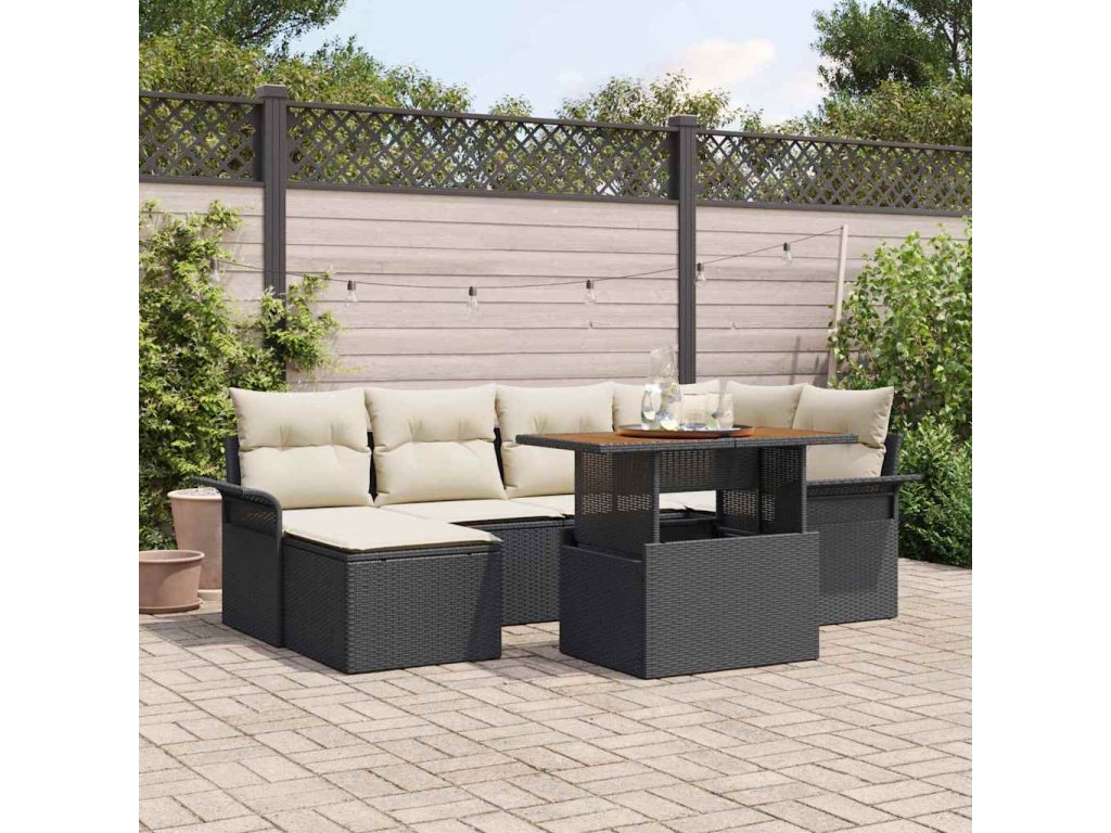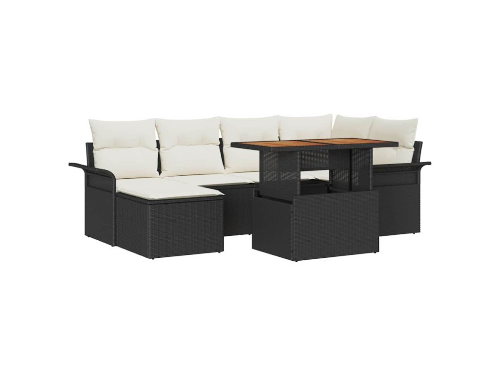 Sada zahradních pohovek s úložištěm 7 pcs Černá Poly ratan 3358091