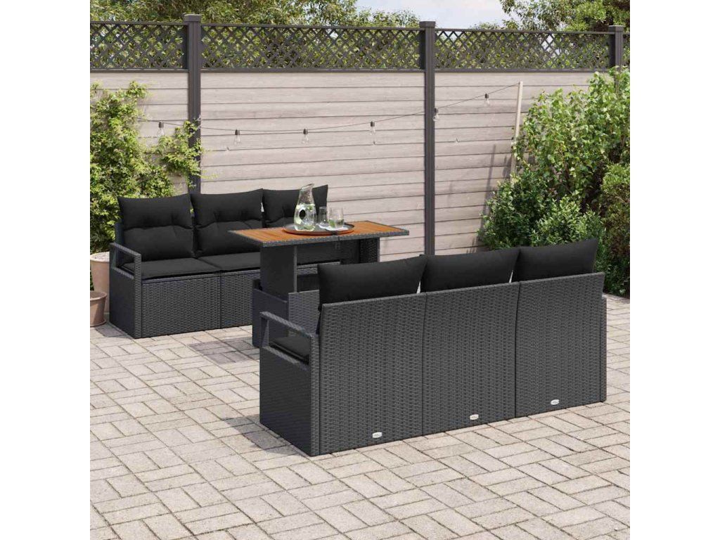 Sada zahradních pohovek s úložištěm 7 pcs Černá Poly ratan 3358396