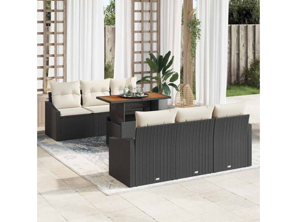 Sada zahradních pohovek s úložištěm 7 pcs Černá Poly ratan 3358518
