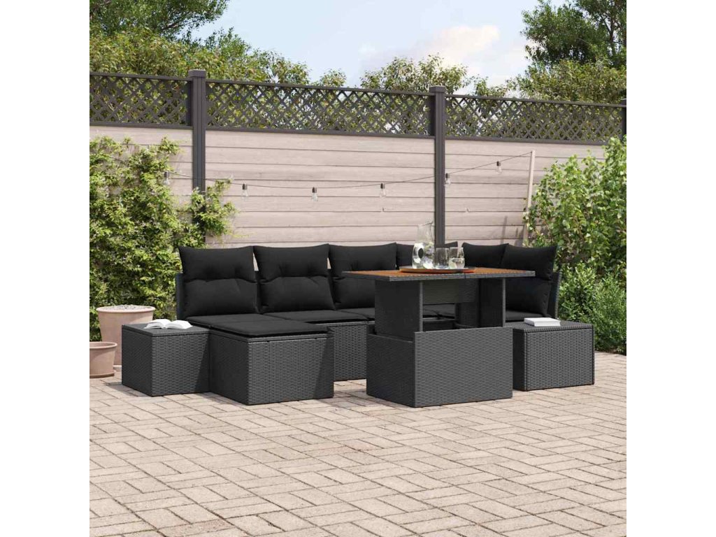 Sada zahradních pohovek s úložištěm 7 pcs Černá Poly ratan 3358725
