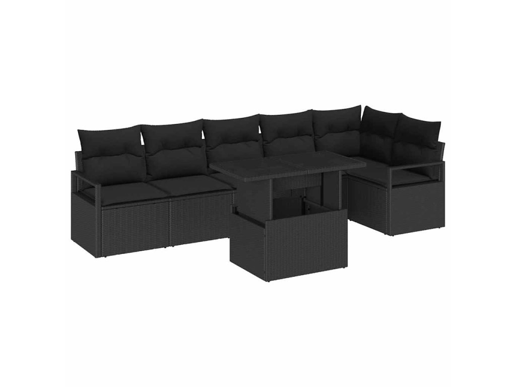 Sada zahradních pohovek s úložištěm 7 pcs Černá polyratan 3348839
