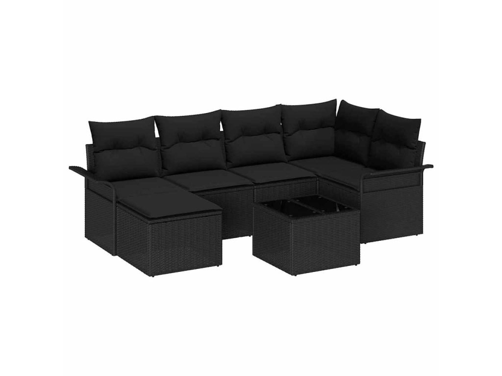 Sada zahradních pohovek s úložištěm 7 pcs Černá polyratan 3354112