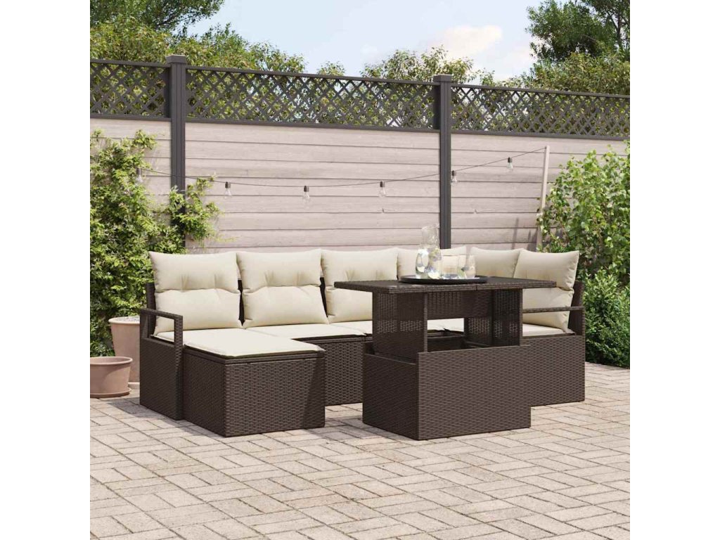 Sada zahradních pohovek s úložištěm 7 pcs Hnědá Poly ratan 3357591
