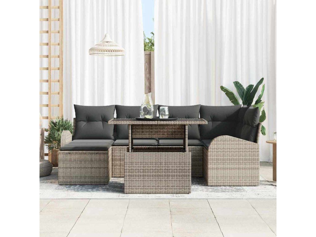Sada zahradních pohovek s úložištěm 7 pcs Šedá Poly ratan 3357412