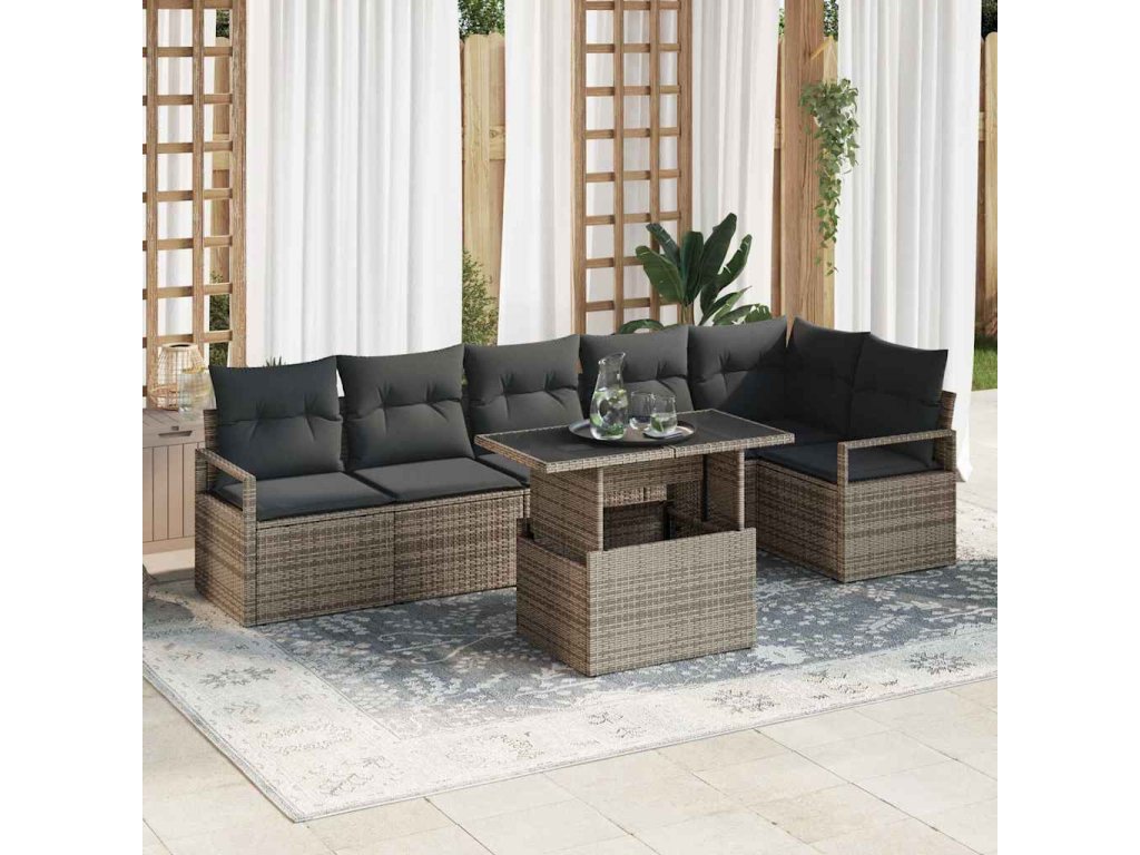 Sada zahradních pohovek s úložištěm 7 pcs Šedá Poly ratan 3357572