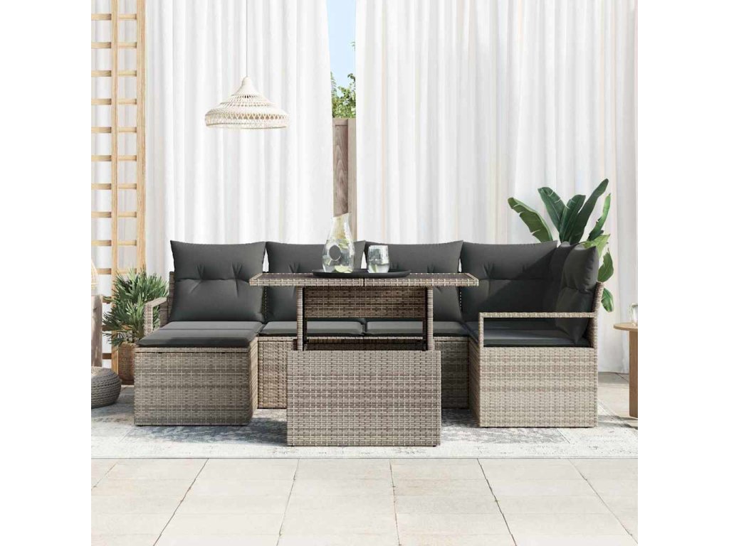 Sada zahradních pohovek s úložištěm 7 pcs Šedá Poly ratan 3357592