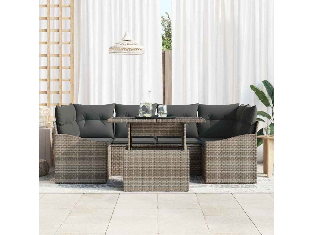 Sada zahradních pohovek s úložištěm 7 pcs Šedá Poly ratan 3357672