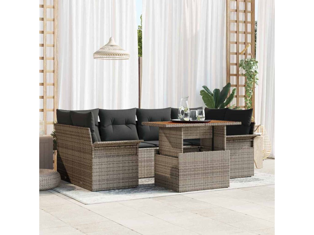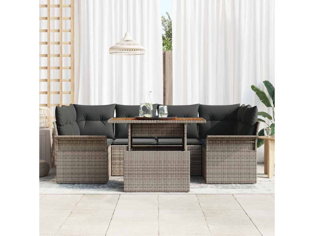 Sada zahradních pohovek s úložištěm 7 pcs Šedá Poly ratan 3358022