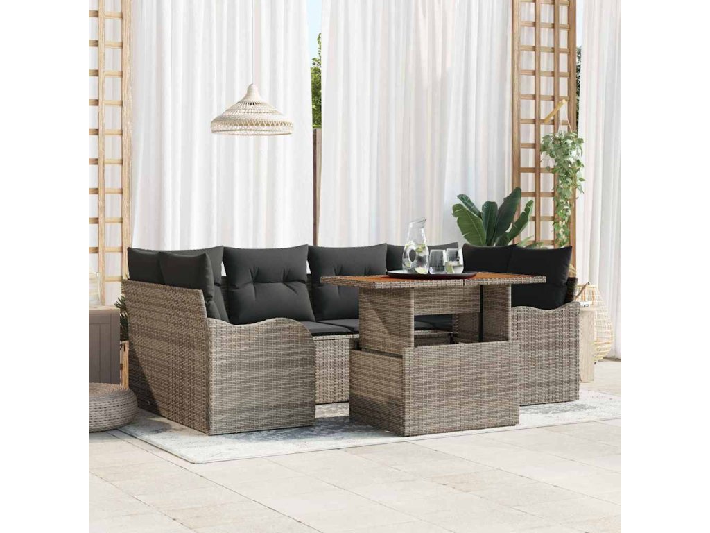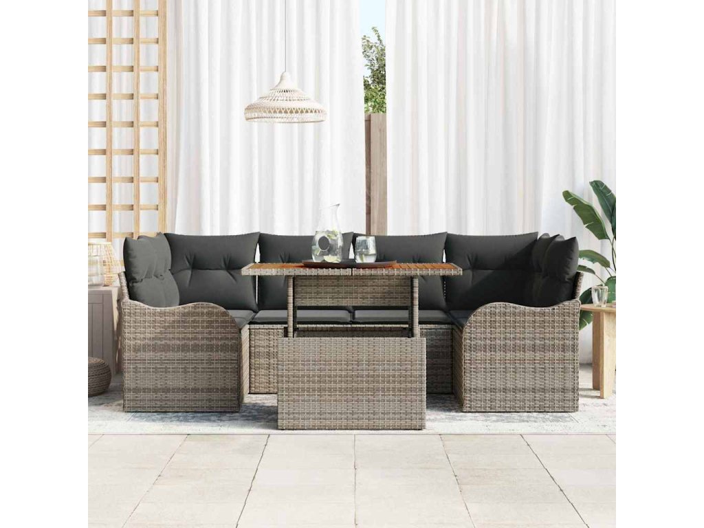 Sada zahradních pohovek s úložištěm 7 pcs Šedá Poly ratan 3358148