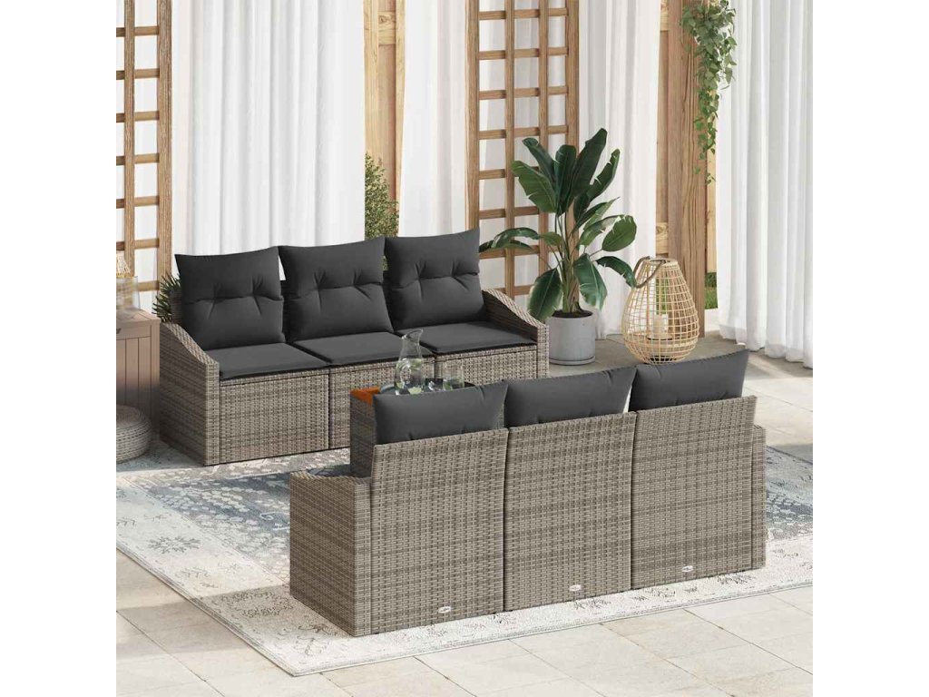 Sada zahradních pohovek s úložištěm 7 pcs Šedá polyratan 3356445