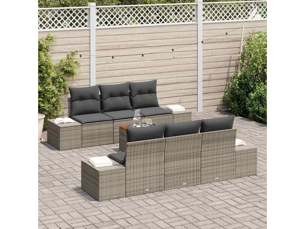 Sada zahradních pohovek s úložištěm 7 pcs Šedá polyratan 3356571