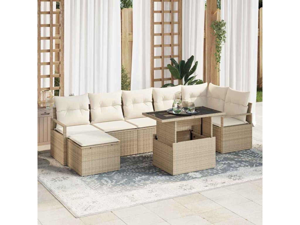 Sada zahradních pohovek s úložištěm 8 pcs Béžová Poly ratan 3357604