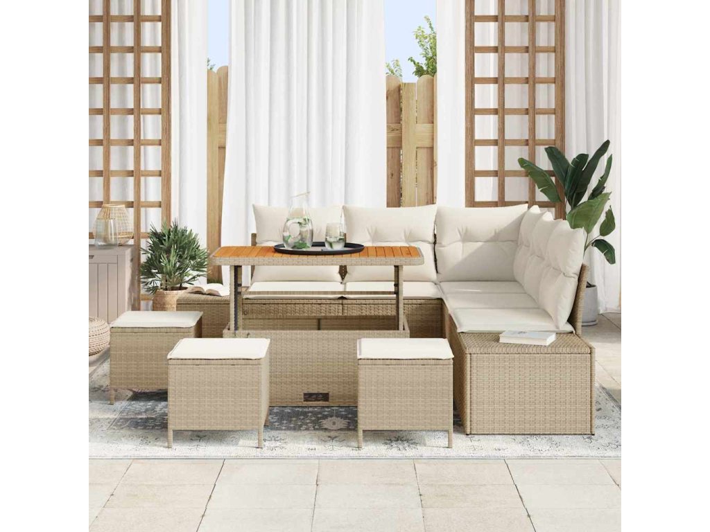 Sada zahradních pohovek s úložištěm 8 pcs Béžová Poly ratan 3364741