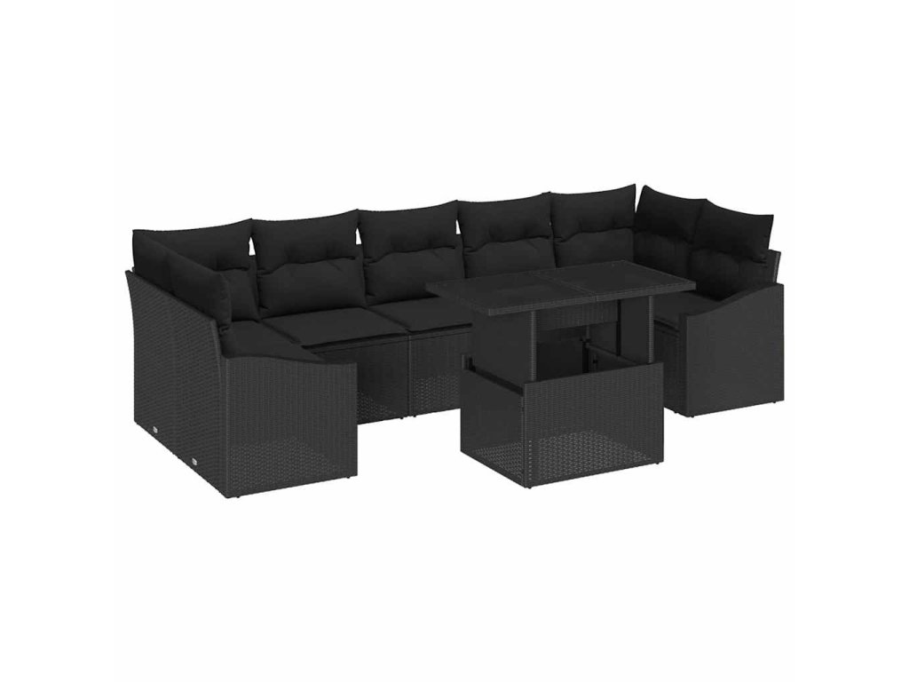 Sada zahradních pohovek s úložištěm 8 pcs Černá Poly ratan 3357696