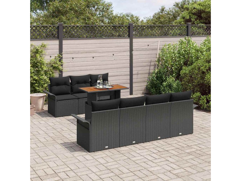 Sada zahradních pohovek s úložištěm 8 pcs Černá Poly ratan 3358032