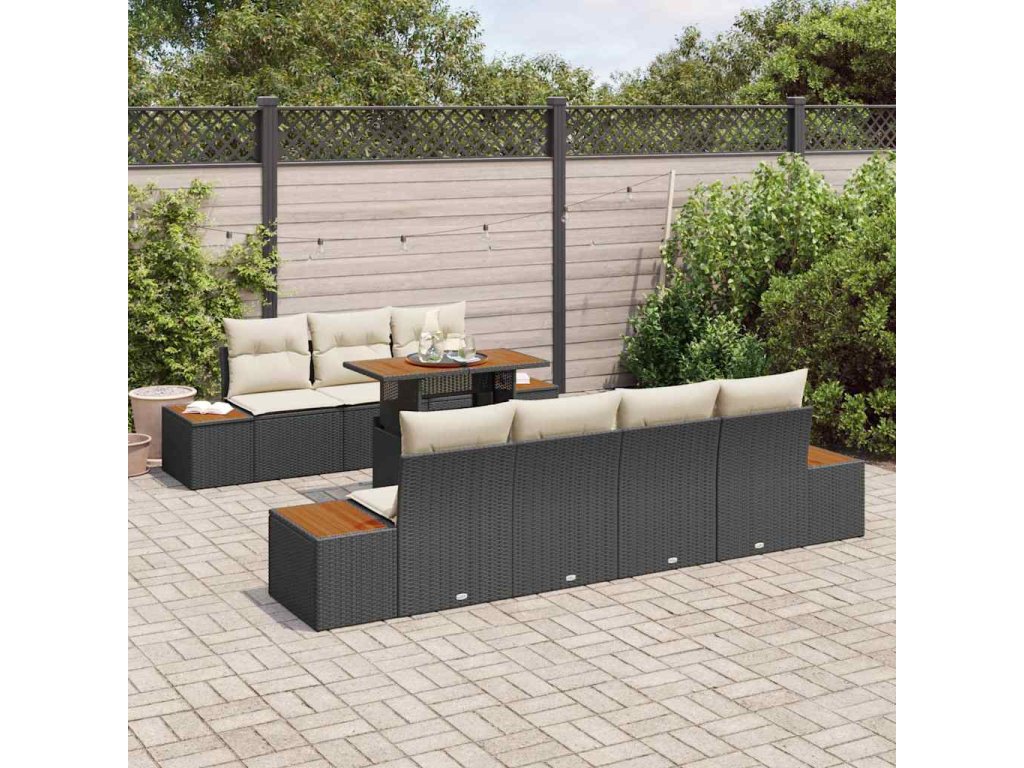 Sada zahradních pohovek s úložištěm 8 pcs Černá Poly ratan 3358776