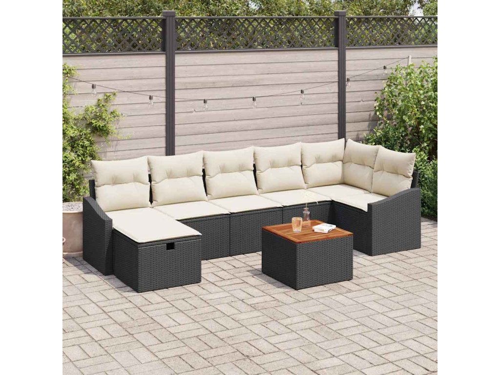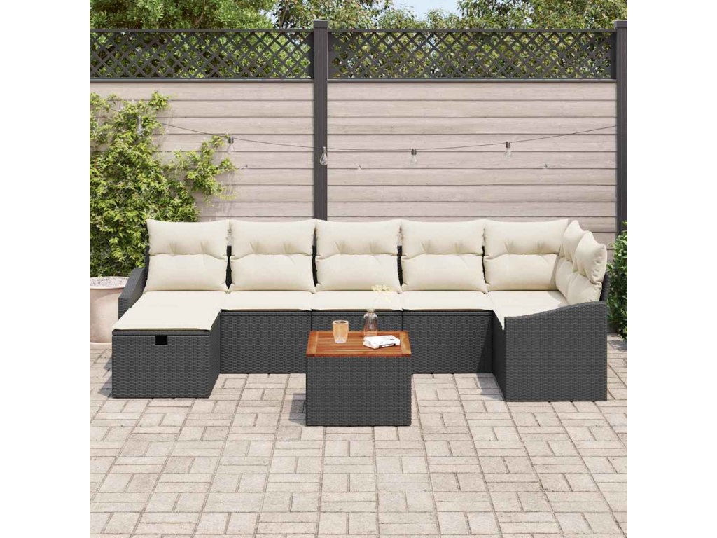 Sada zahradních pohovek s úložištěm 8 pcs Černá Poly ratan 3360904