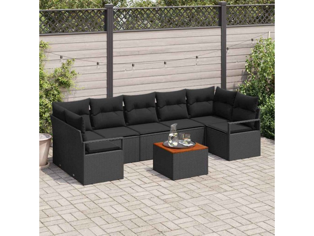 Sada zahradních pohovek s úložištěm 8 pcs Černá polyratan 3356343