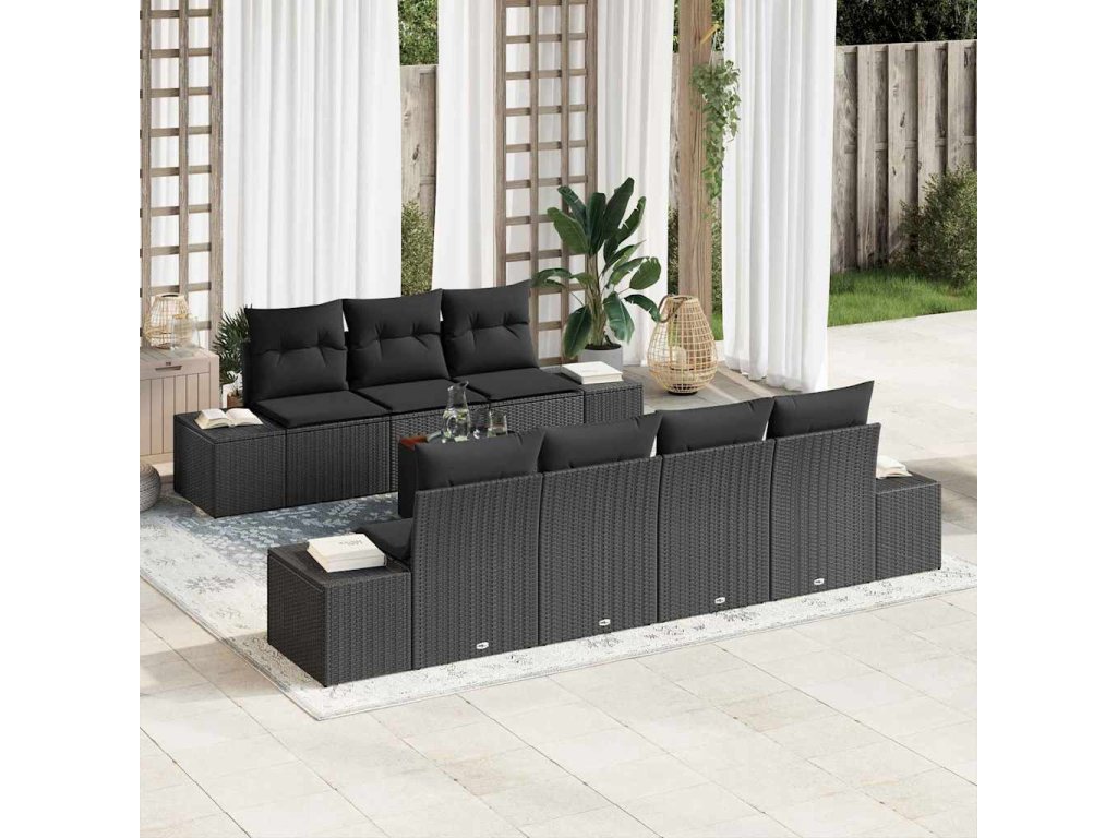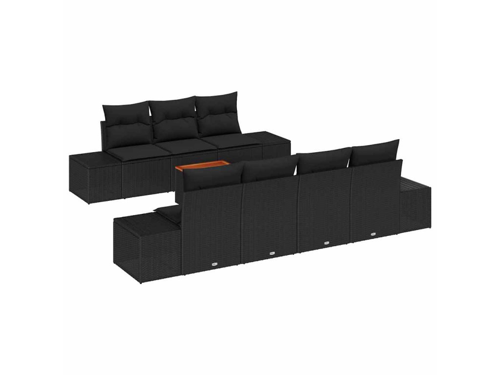 Sada zahradních pohovek s úložištěm 8 pcs Černá polyratan 3356588