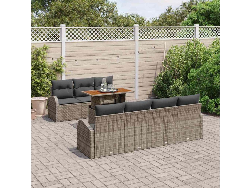 Sada zahradních pohovek s úložištěm 8 pcs Šedá Poly ratan 3358281