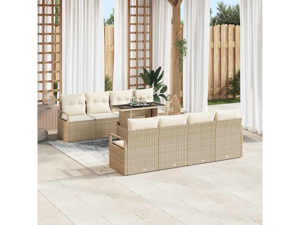 Sada zahradních pohovek s úložištěm 9 pcs Béžová Poly ratan 3357524