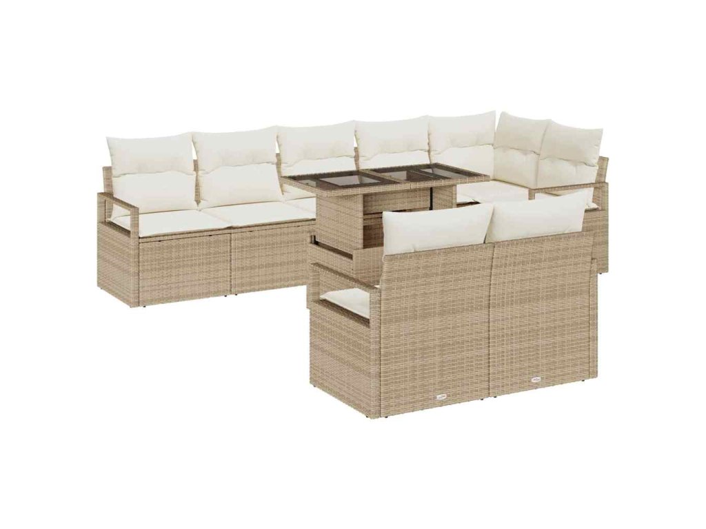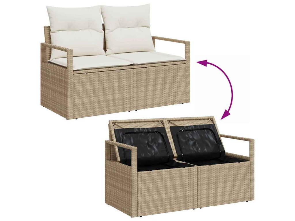 Sada zahradních pohovek s úložištěm 9 pcs Béžová Poly ratan 3357584