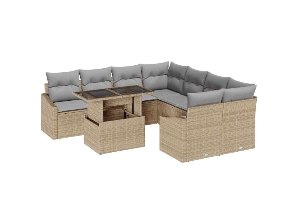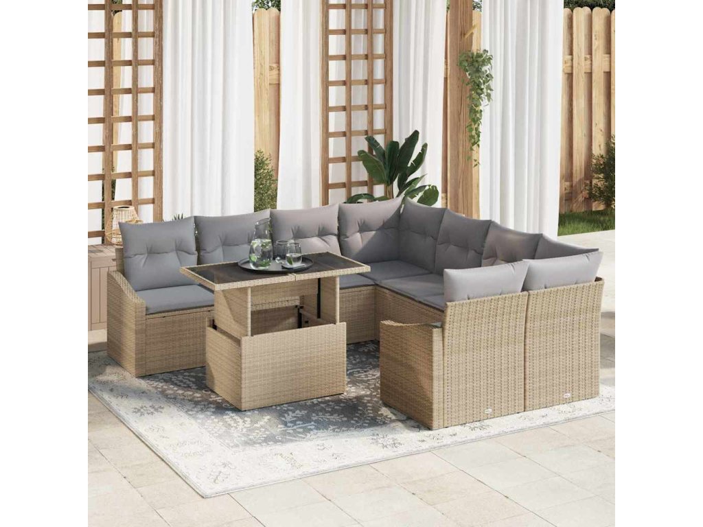 Sada zahradních pohovek s úložištěm 9 pcs Béžová Poly ratan 3357713