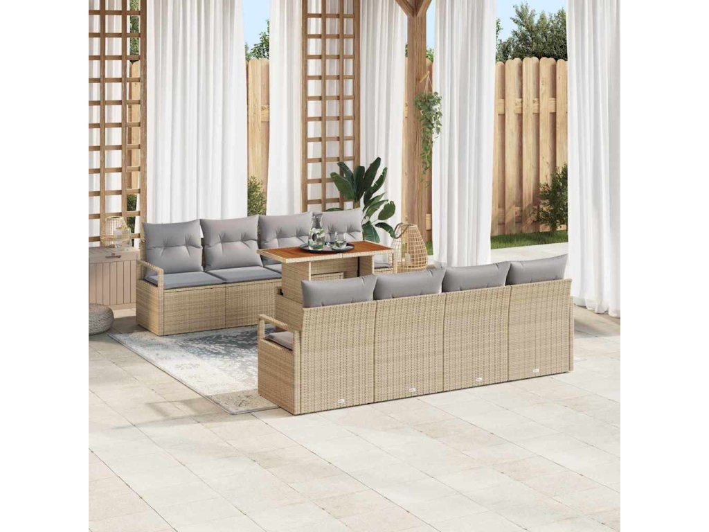 Sada zahradních pohovek s úložištěm 9 pcs Béžová Poly ratan 3358422