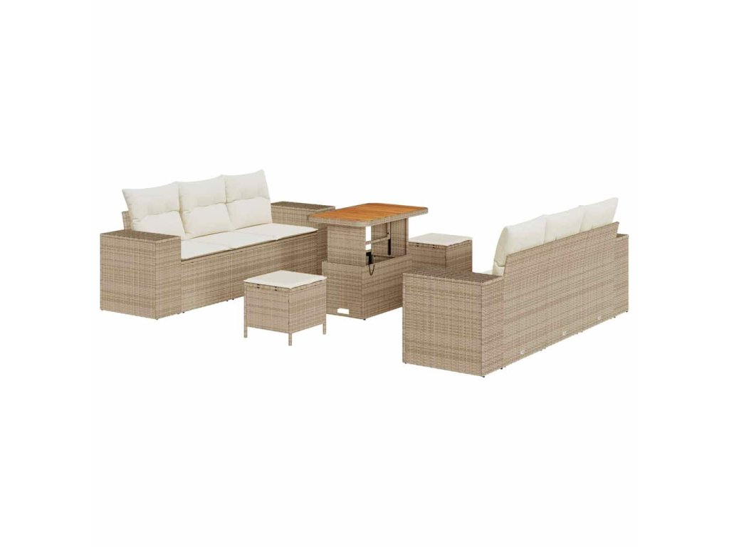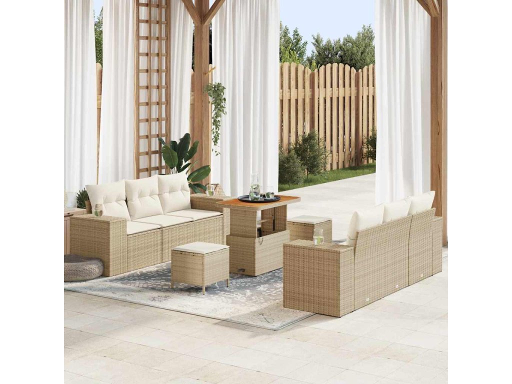 Sada zahradních pohovek s úložištěm 9 pcs Béžová Poly ratan 3361961