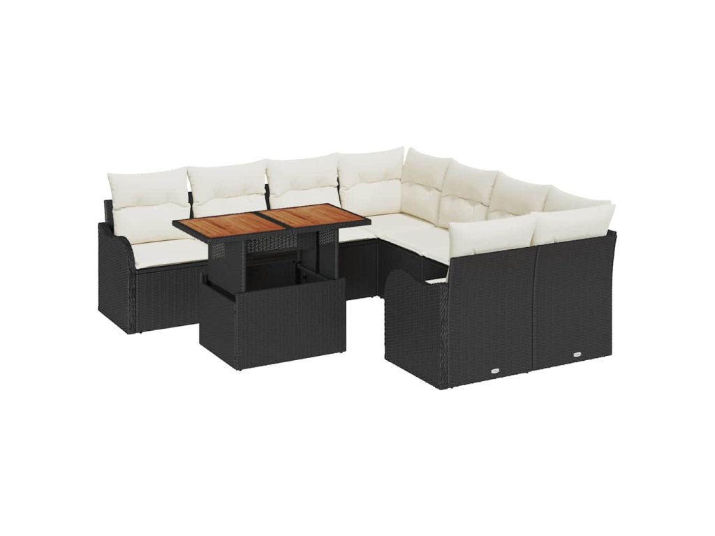 Sada zahradních pohovek s úložištěm 9 pcs Černá Poly ratan 3358175