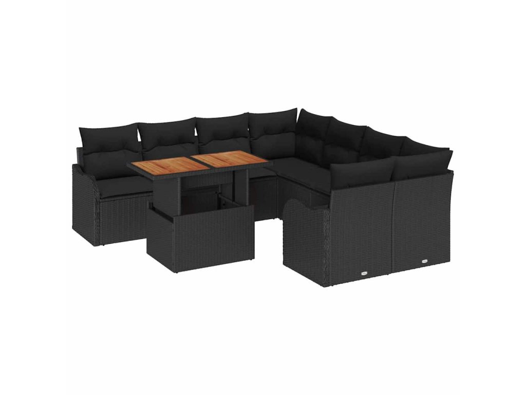 Sada zahradních pohovek s úložištěm 9 pcs Černá Poly ratan 3358179