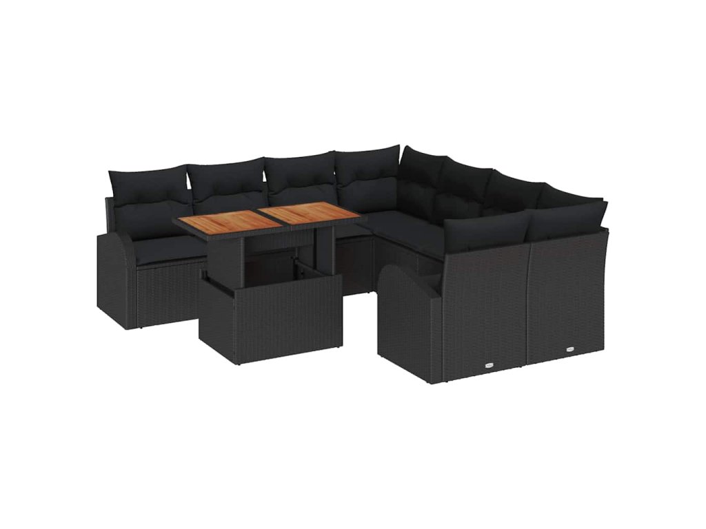 Sada zahradních pohovek s úložištěm 9 pcs Černá Poly ratan 3358305