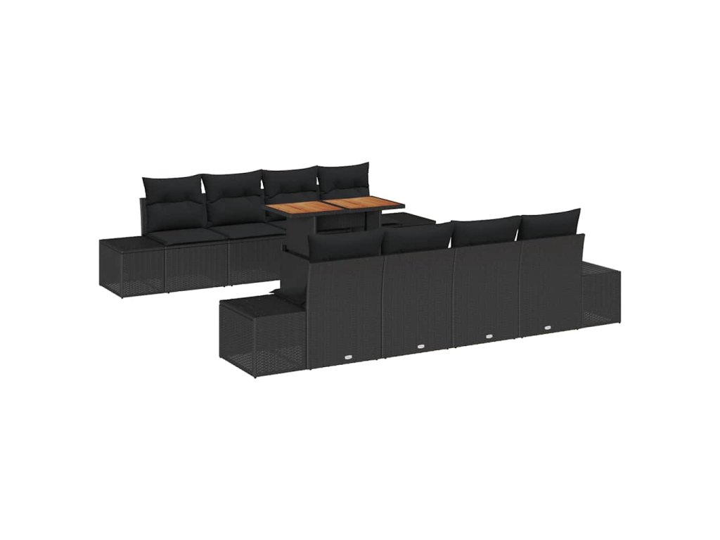 Sada zahradních pohovek s úložištěm 9 pcs Černá Poly ratan 3358676