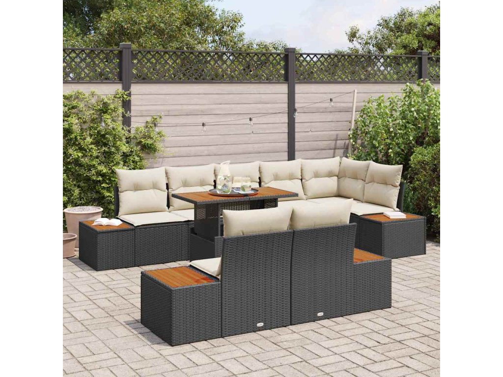 Sada zahradních pohovek s úložištěm 9 pcs Černá Poly ratan 3358816