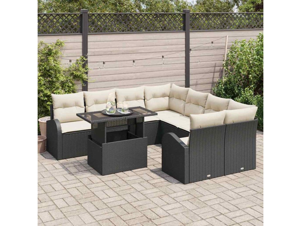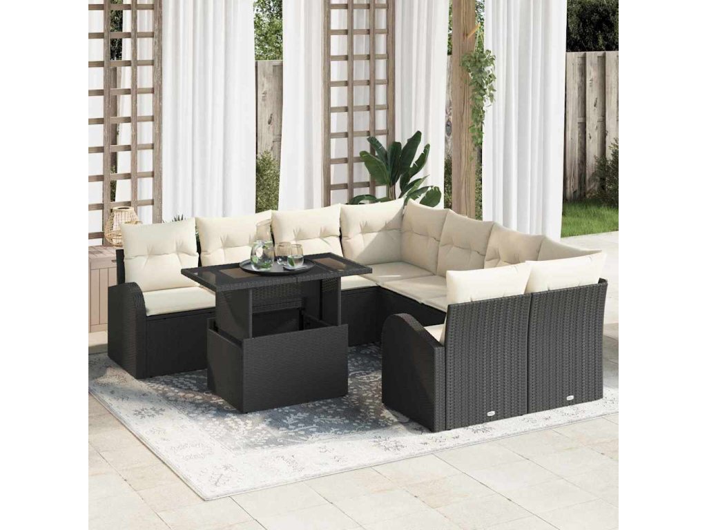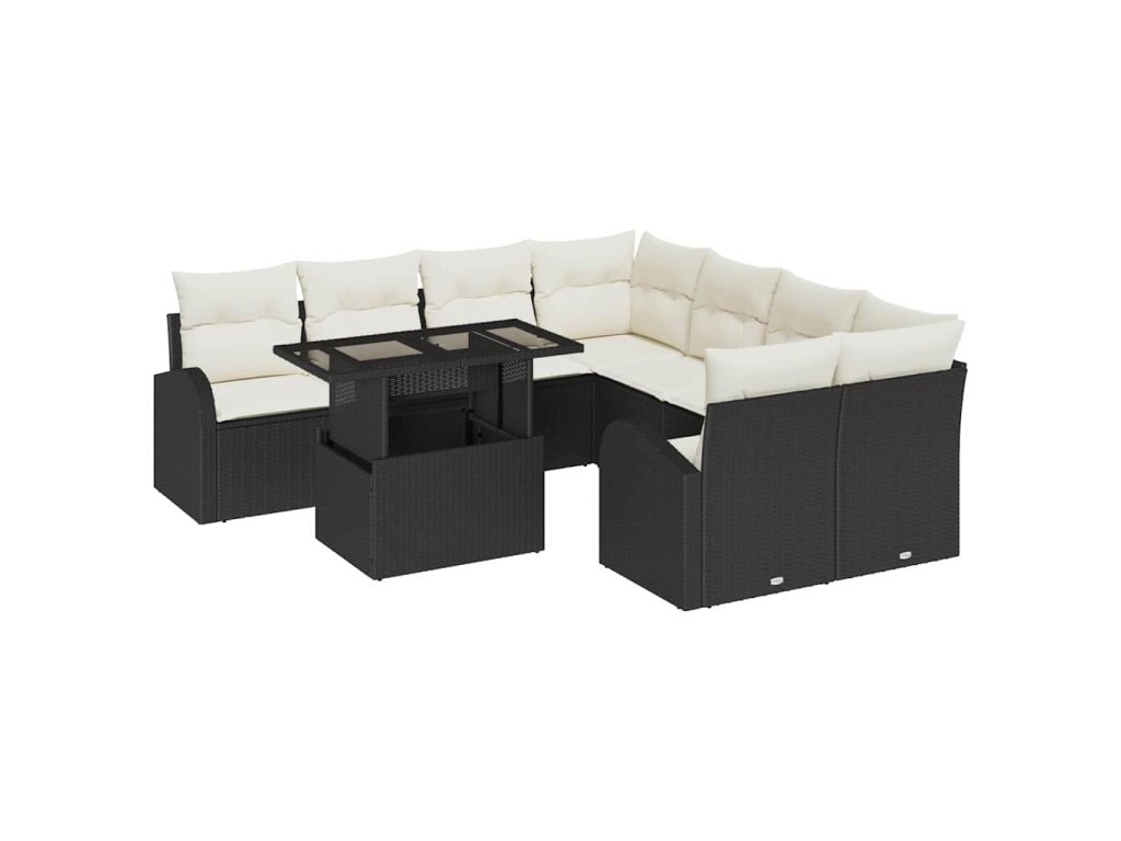 Sada zahradních pohovek s úložištěm 9 pcs Černá polyratan 3348613