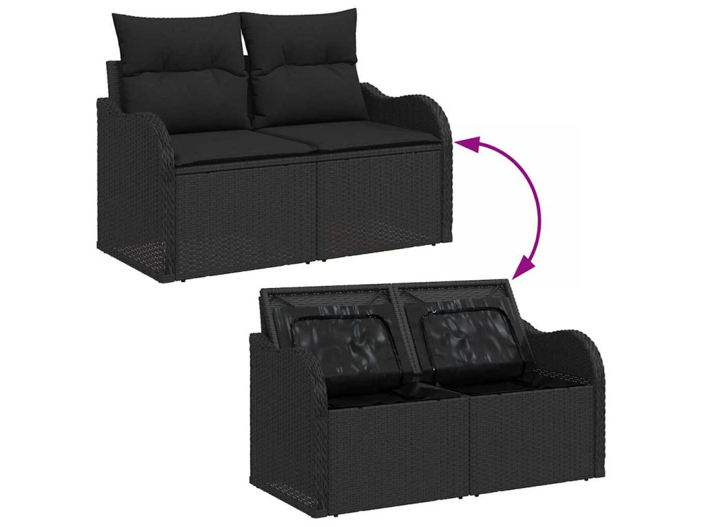 Sada zahradních pohovek s úložištěm 9 pcs Černá polyratan 3356098