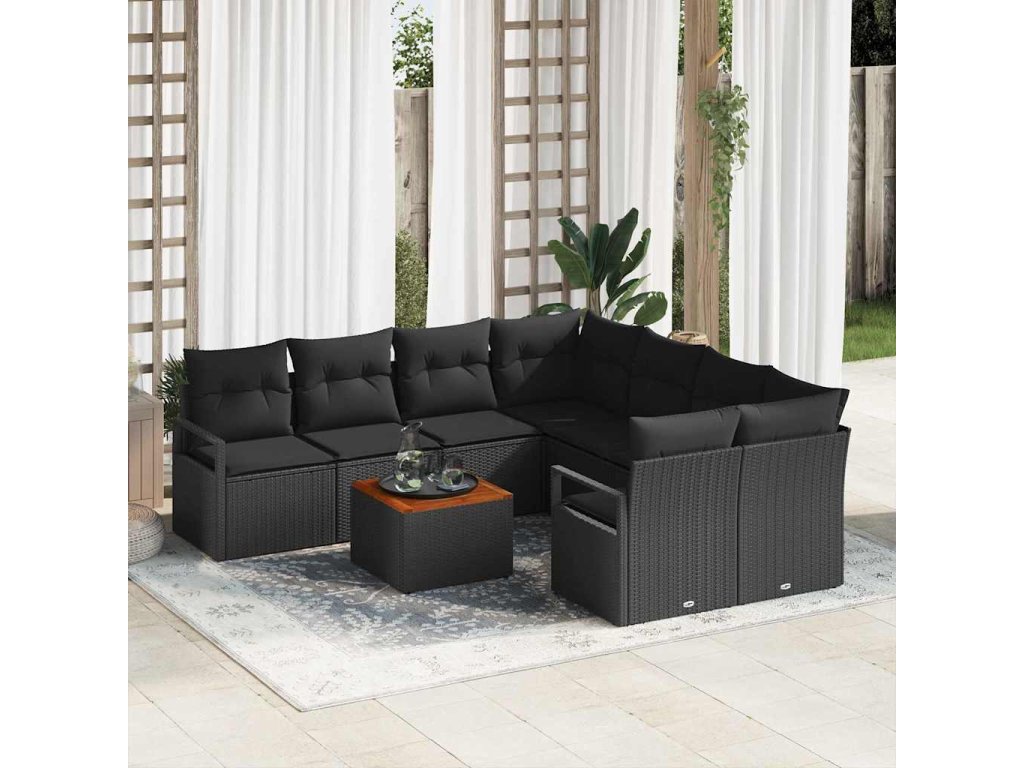 Sada zahradních pohovek s úložištěm 9 pcs Černá polyratan 3356357
