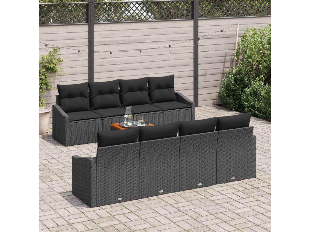 Sada zahradních pohovek s úložištěm 9 pcs Černá polyratan 3356476