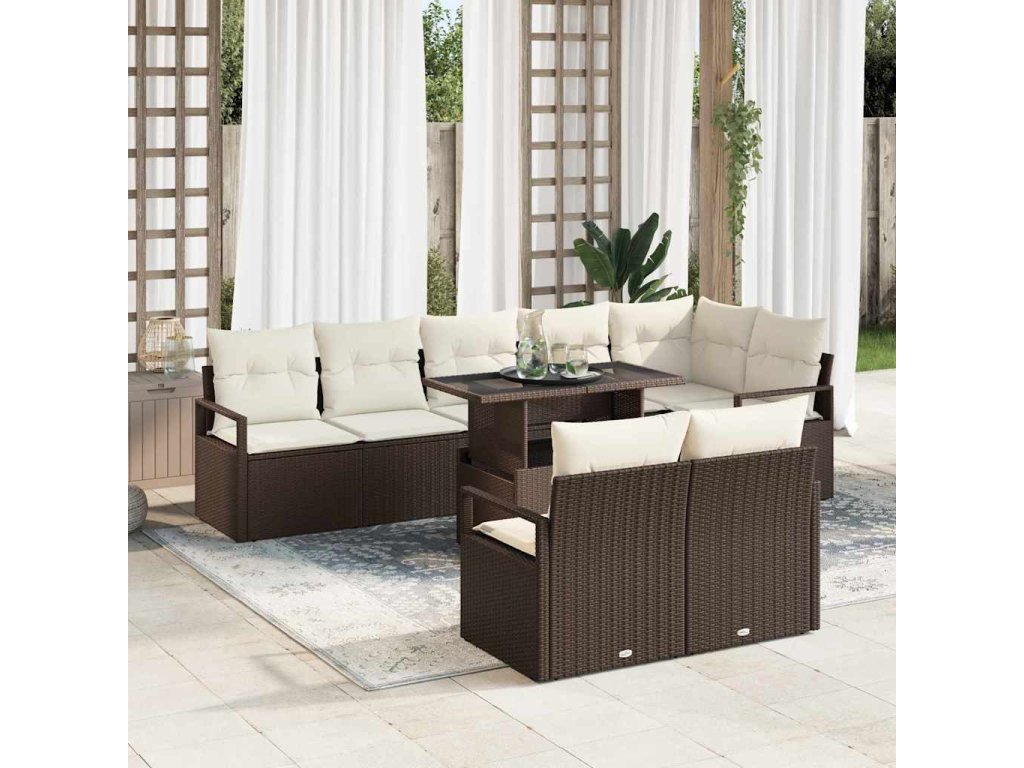 Sada zahradních pohovek s úložištěm 9 pcs Hnědá Poly ratan 3357581