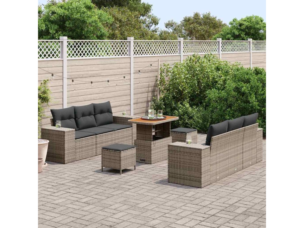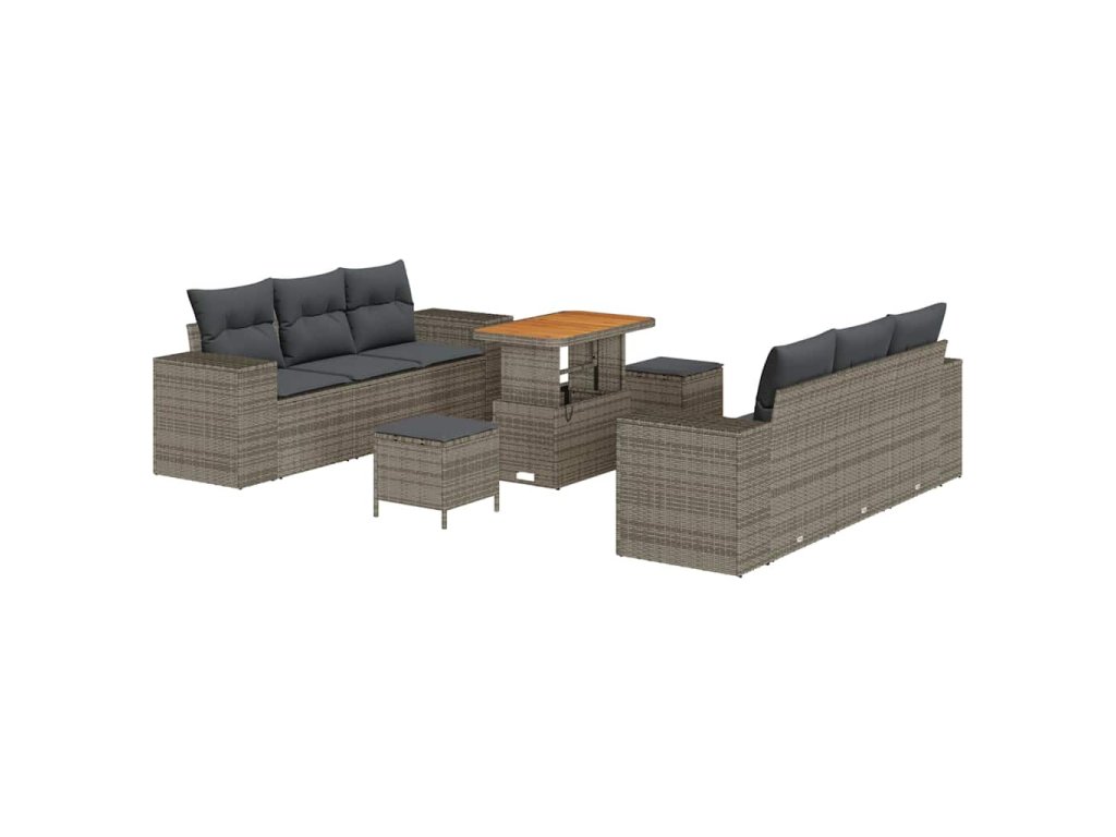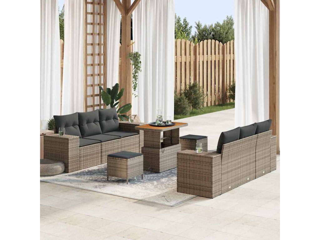 Sada zahradních pohovek s úložištěm 9 pcs Šedá Poly ratan 3361963