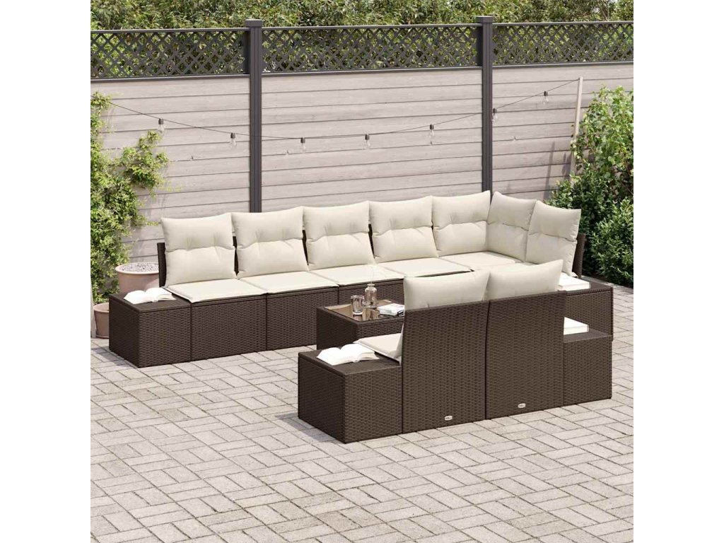 Sada zahradních pohovek s úložištěm Hnědá a krémová Poly ratan 3355787