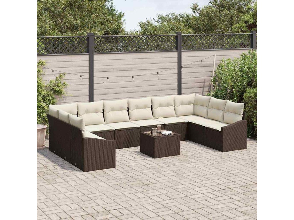 Sada zahradních pohovek s úložištěm Hnědá a krémová polyratan 3355577