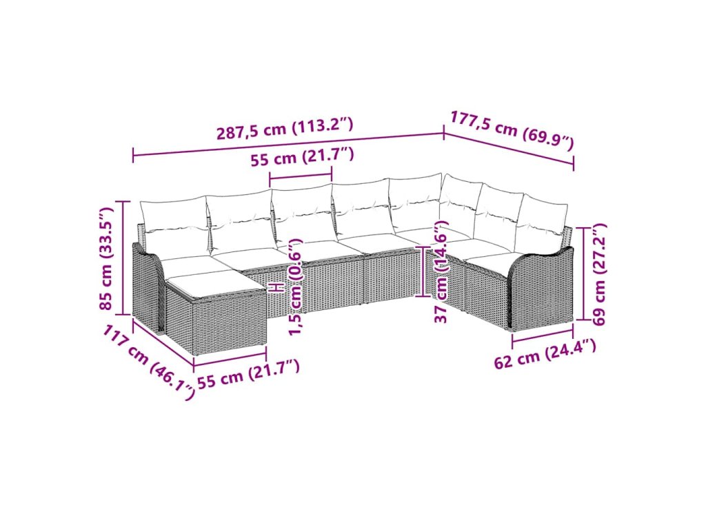 - Součásti: Každá část pohovky je spojená práškově lakovaným ocelovým rámem pro stabilitu. Ocelové nohy poskytují dobrou podporu, čímž zabraňují houpání. Ergonomické opěrky na ruce a poly ratanové zádové opěry zajišťují komfort i při delším sezení.