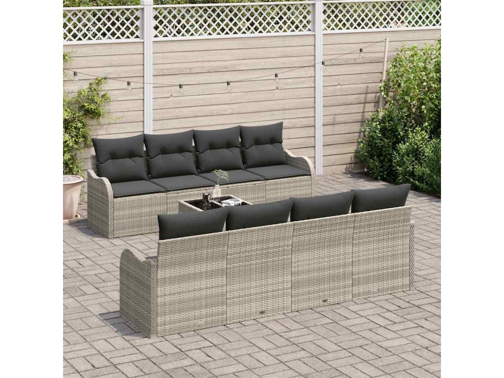 Tato současná zahradní sedací souprava je stylová a pohodlná pro venkovní prostory. Kombinuje moderní design s praktičností, což ji dělá ideální pro zahrady nebo terasy. Obdélníkový tvar je univerzální, snadno se přizpůsobí jak intimním šichtám, tak větším akcím.
