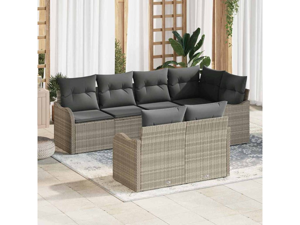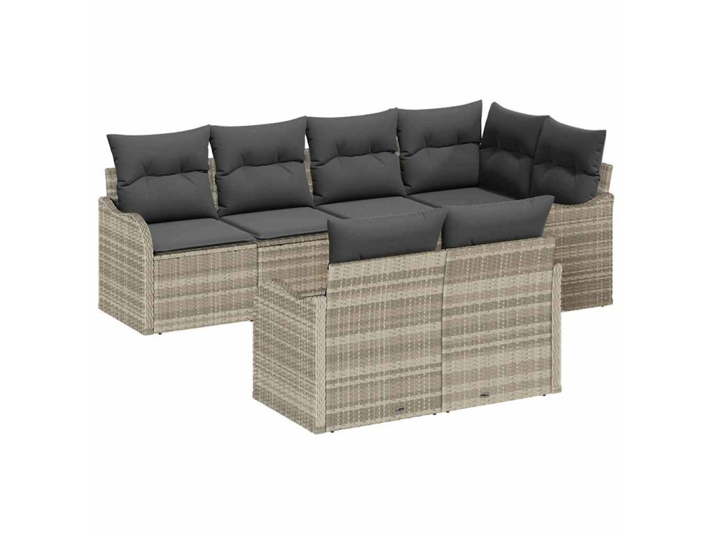 Tento zahradní pohovkový set spojuje moderní vzhled s praktickými funkcemi, navržený tak, aby vylepšil tvůj venkovní prostor. Pohodlně se sem vejde až 7 lidí, takže je super pro rodinné akce nebo laxní chvíle s kamarády na zahradě nebo terase. S elegantním pleteným designem dodává tvému venkovnímu prostoru šmrnc. Pevné materiály jsou vyrobeny tak, aby vydržely, a poskytují pohodlné sezení, jistě tě přimějí k relaxaci a užívání si přírody.