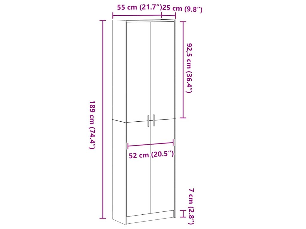 - Celkové rozměry: 55 x 25 x 189 cm (D x Š x V)
