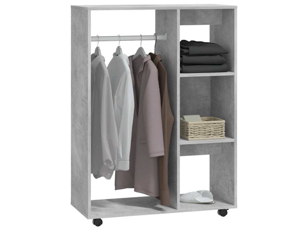 Tato úložná skříň je vyrobena z kompozitního dřeva, je proto odolná a robustní a skvěle vám poslouží pro uložení a organizaci vašeho oblečení. Pomocí koleček ve spodní straně skříně ji můžete snadno přemístit na požadované místo. Tento šatník má velkou otevřenou přihrádku a 3 boční police, kde budete mít vše potřebné hezky po ruce. Navíc se snadno čistí vlhkým hadříkem.