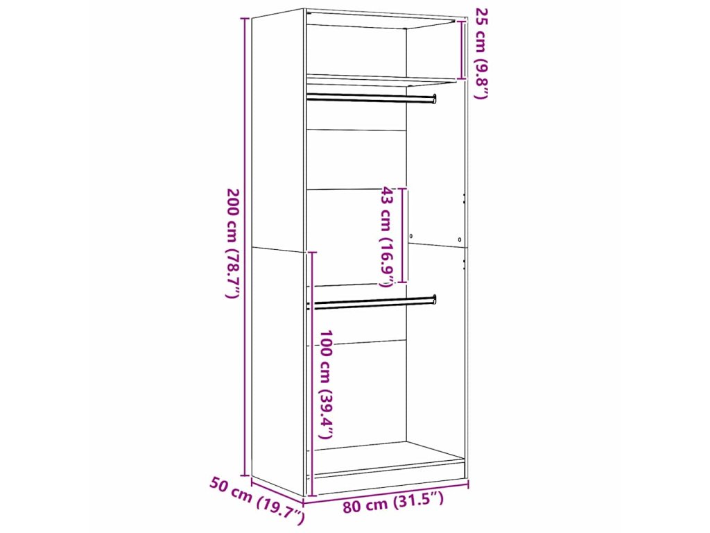 Šatní skříň dub sonoma 80 x 50 x 200 cm kompozitní dřevo 3307794